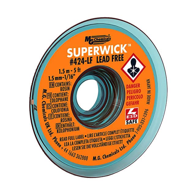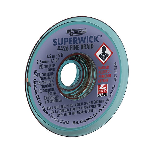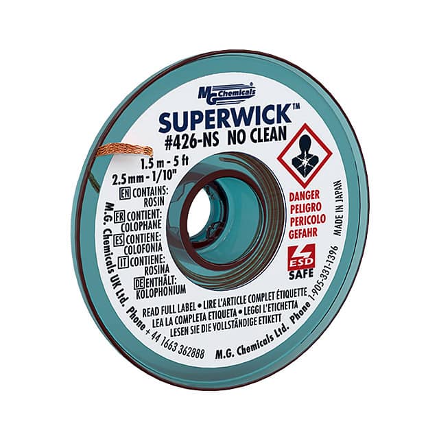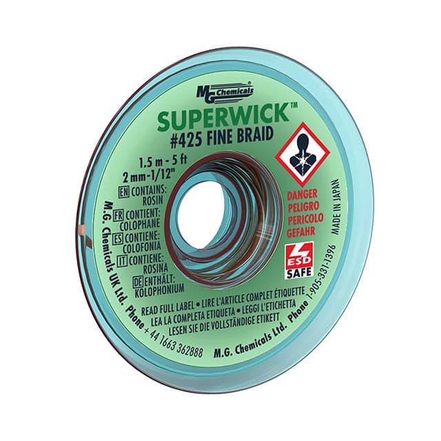 ![]() 425 MG Chemicals | 1 $4.2600 | Datasheet | Braid/Wick | Rosin, Mildly Activated (RMA), Lead Free | Static Dissipative (SD) | Green | 0.075" (1.91mm) | 5' (1.524m) | - | - | 72°F ~ 81°F (22°C ~ 27°C) | 2,620 Cart + RFQ |