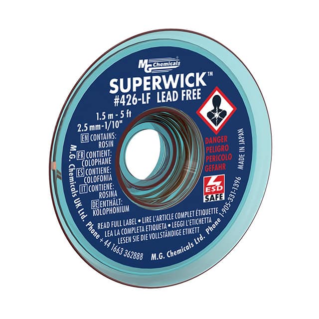 ![]() 426-LF MG Chemicals | 1 $5.0300 | Datasheet | Braid/Wick | Rosin, Mildly Activated (RMA), Lead Free | Static Dissipative (SD) | Blue | 0.100" (2.54mm) | 5' (1.524m) | - | - | 72°F ~ 81°F (22°C ~ 27°C) | 5,475 Cart + RFQ |
