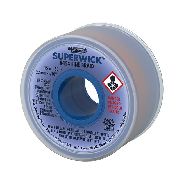 ![]() 454 MG Chemicals | 1 $28.9500 | Datasheet | Braid/Wick | Rosin, Mildly Activated (RMA), Lead Free | Static Dissipative (SD) | Blue | 0.100" (2.54mm) | 50' (15.24m) | - | - | 72°F ~ 81°F (22°C ~ 27°C) | 8,907 Cart + RFQ |