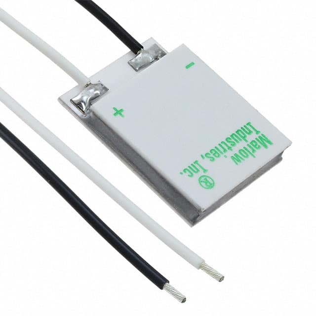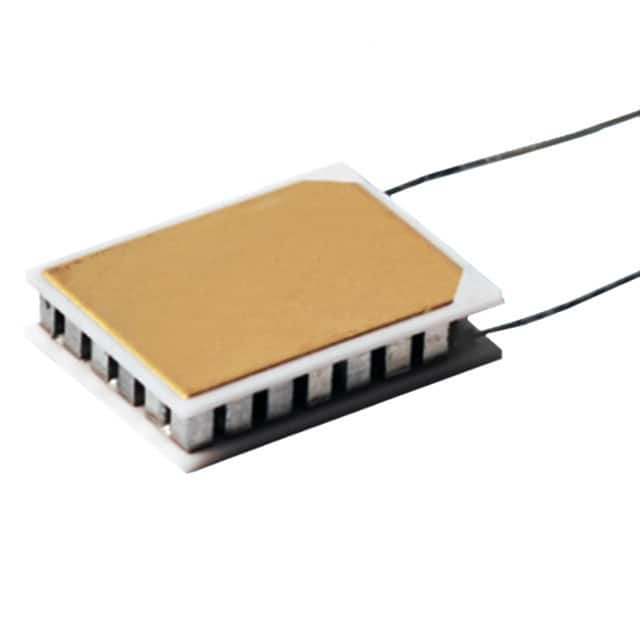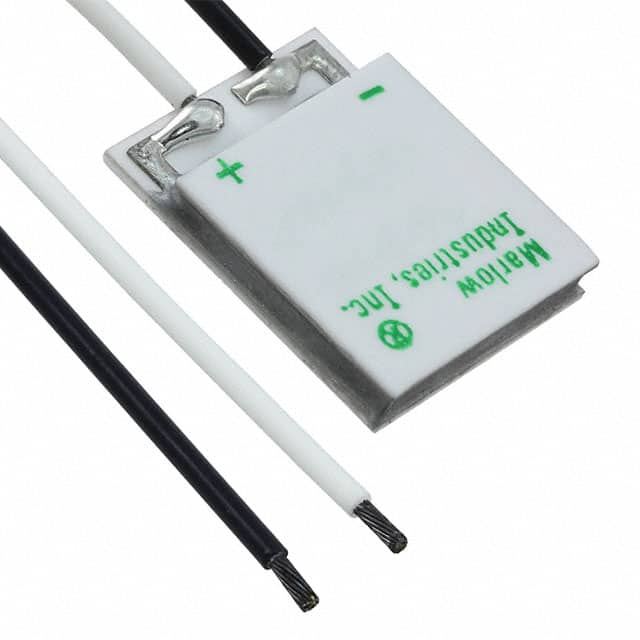 Thermoelectric or Peltier Modules are devices that are designed for thermal transfer using the Peltier effect. As current passes through the junction between two ceramic substrates, heat is produced on one side of the junction and absorbed on the other side. A heatsink is recommended for the hot side of the module. The characteristics are Qmax @ Th, Delta Tmax @ Th, current max, voltage max, resistance, and operating temperature.
