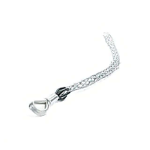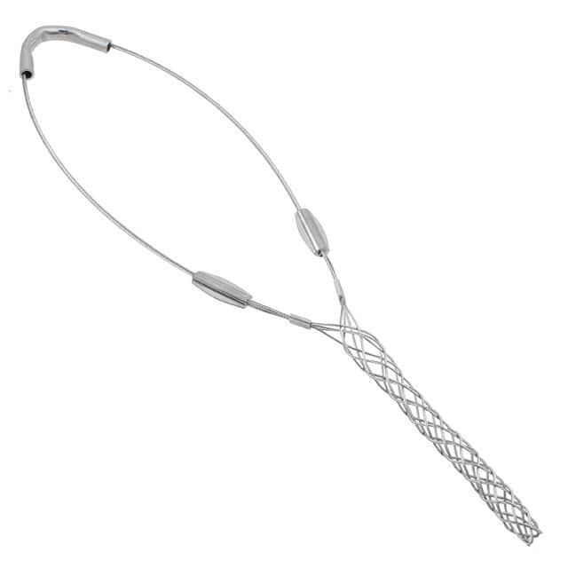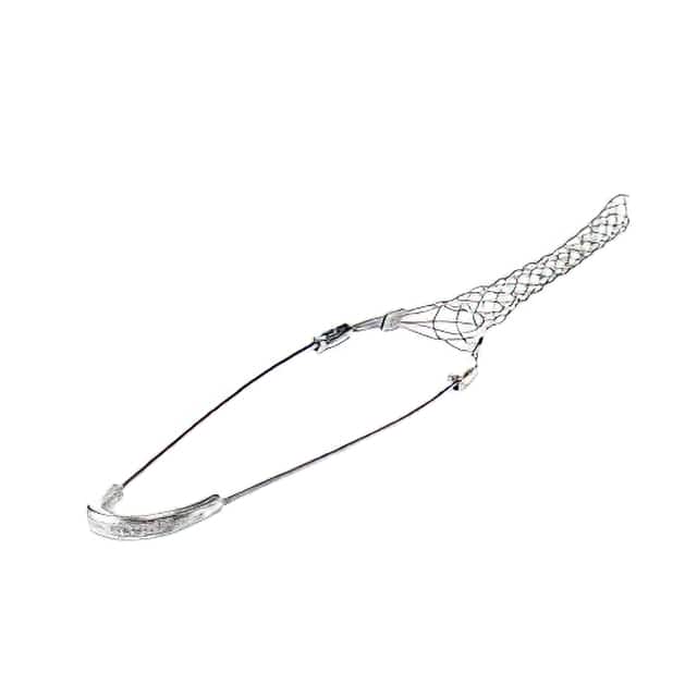 Pulling, support and strain relief grips are cable and cable mesh devices designed to distribute the weight of vertical or sloping runs of electrical and fiber optic cable, metal rods, tubing or hose over the length of the grip to avoid damage. Grips are selected by cable diameter, mesh length, bale length, eye type and breaking strength. Grip styles include bus drop, fiber optic, I-Grip, heavy, junior, medium and standard duties.